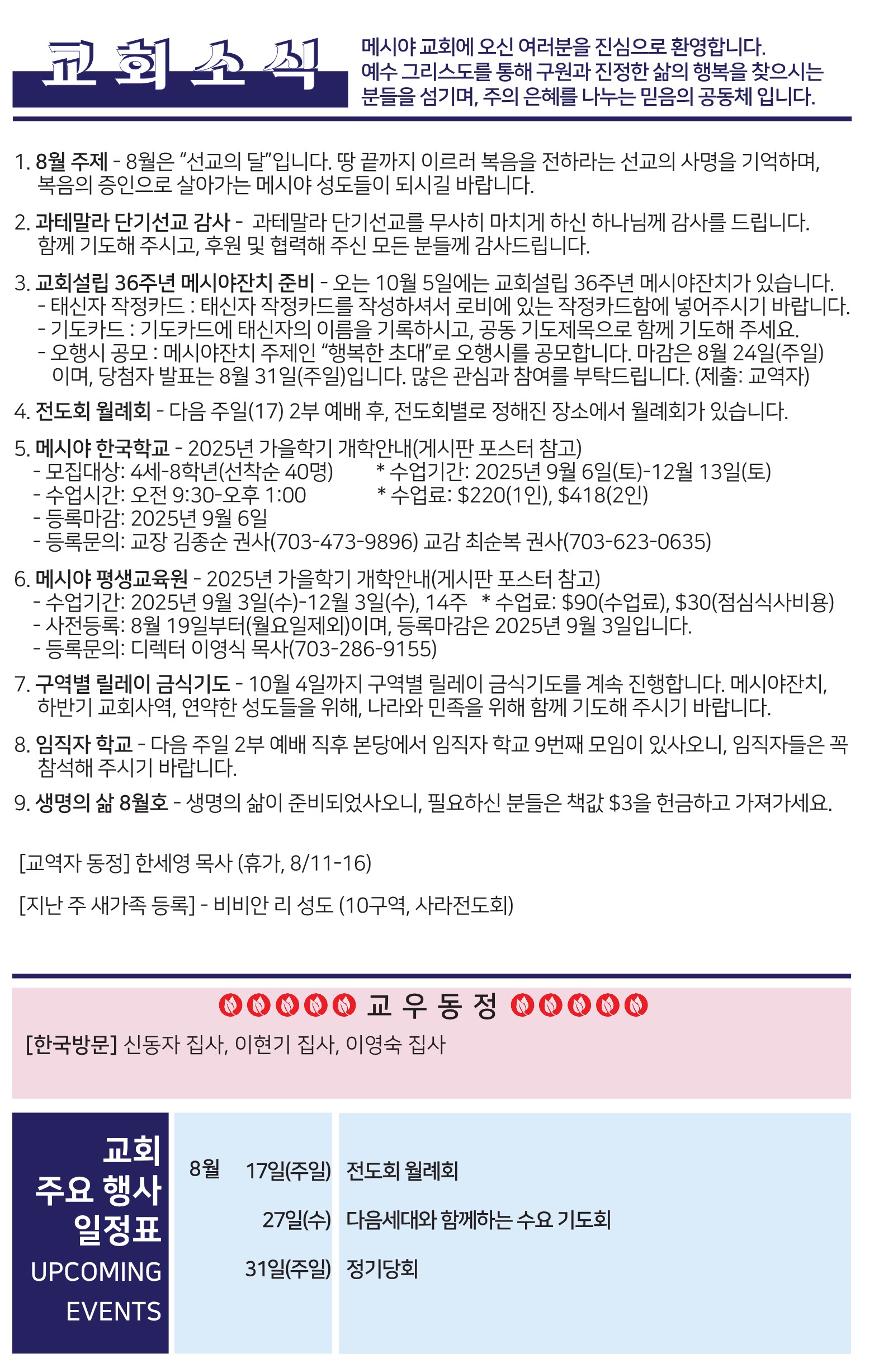 Bulletin 교회주보 [2025-08-10] 주보 Author Pastor MPC Date 2025-08-09 14:12 Views 165 Like 0 Unlike 0 Print « [2025-08-03] 주보 [2025-08-17] 주보 » List