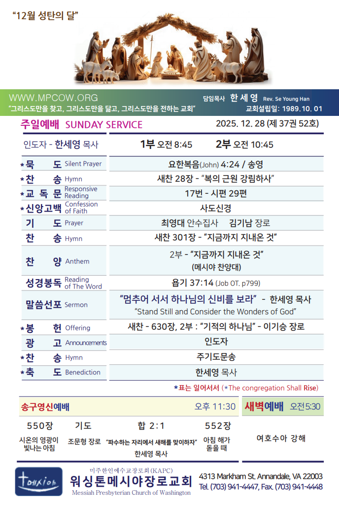 Bulletin 교회주보 [2025-12-28] 주보 Author Pastor MPC Date 2025-12-27 15:38 Views 41 Like 0 Unlike 0 Print « [2025-12-21] 주보 [2026-01-04] 주보 » List
