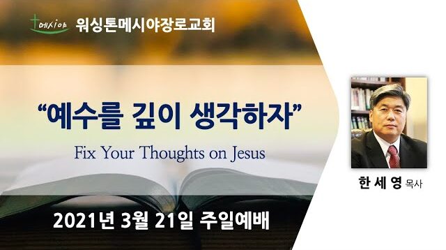 2021년 3월 21일 주일예배, 설교: 한세영 목사 히브리서 2장 6-18절 “예수를 깊이 생각하자” 예배 시간 안내 * 주일 예배 1부: 08:20 am, 2부: 09:45 am, 3부: 11:45 am * 새벽예배: (월-금) 5:30 am, (토) 6:00 am * 수요예배: 8:00 pm 금주 주보 바로가기: https://bit.ly/35lGJCh 교회 홈페이지: https://www.mpcow.org 유투브 홈페이지: https://www.youtube.com/user/mpcoworg 온라인헌금 바로가기: https://messiah-annandale.churchcenter.com/giving 메시야장로교회는 CCLI […]